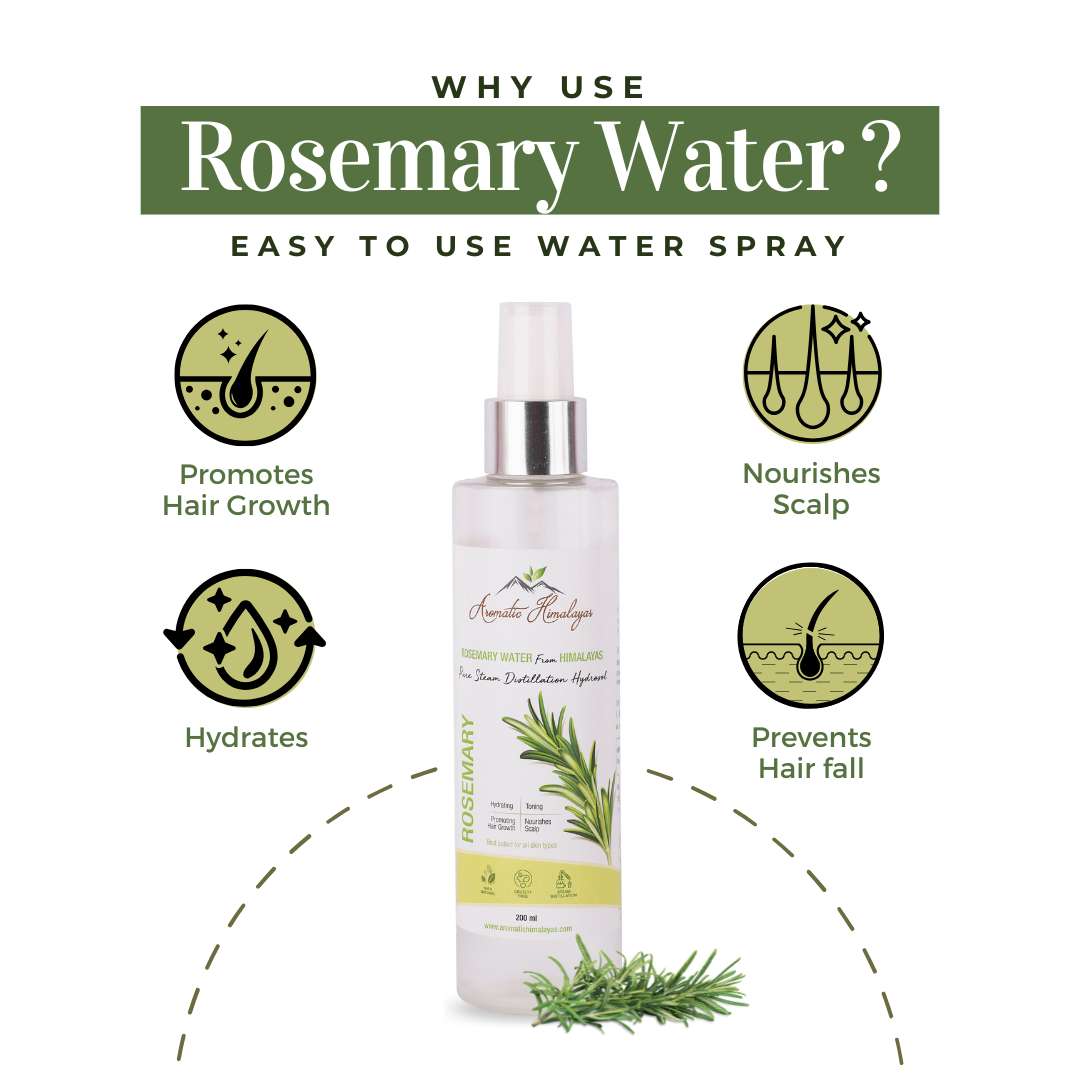 PROMOTES HAIR GROWTH: Rosemary hydrosol stimulates blood circulation in the scalp, encouraging hair growth and reducing hair loss.