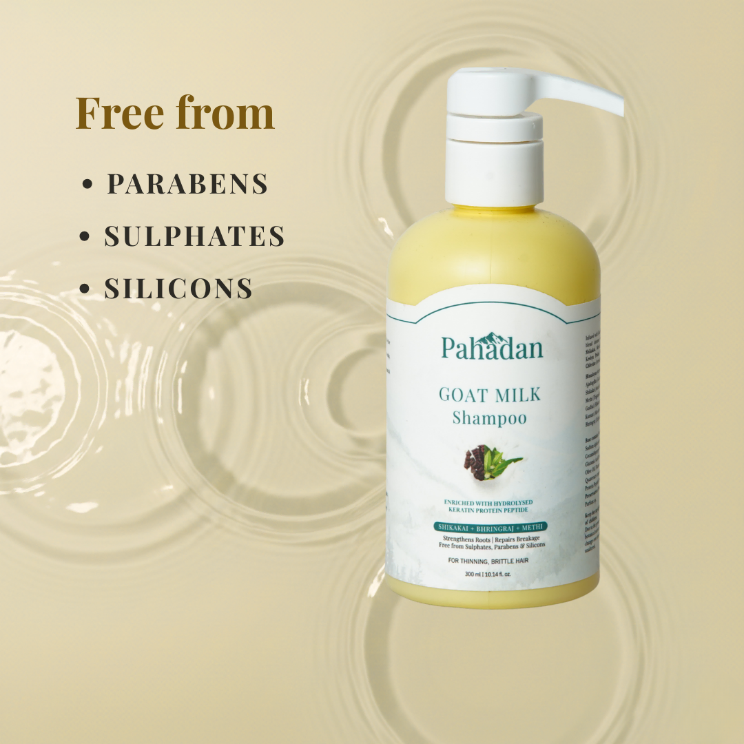Pahadan Goat Milk Shampoo – Keratin Boost is an Ayurvedic strengthening shampoo designed for thinning and brittle hair. Infused with Goat Milk and Hydrolysed Keratin Protein Peptide Powder, this formulation gently cleanses the scalp while supporting hair strength and resilience.