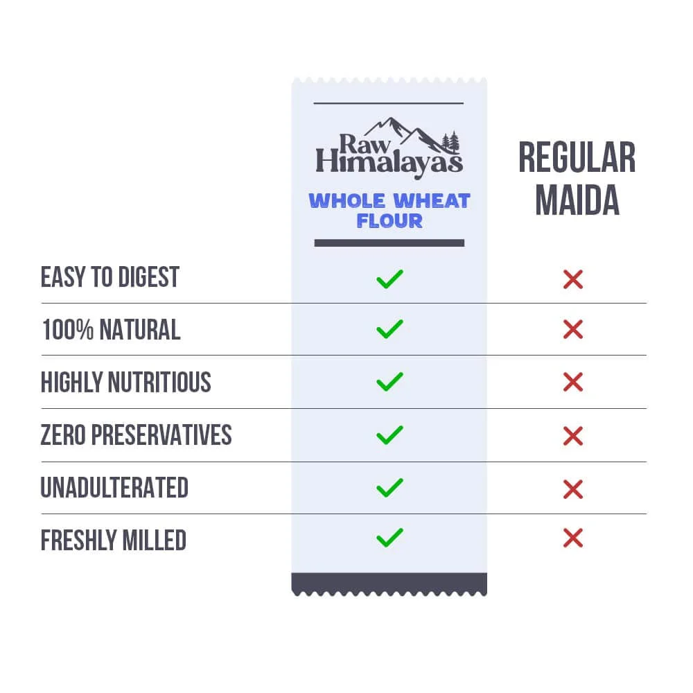 Raw Himalayas Whole Wheat Bread Himalayan Flour is made by grounding the entire wheat grain to retain micronutrients and high protein content (12.89%), making it an excellent choice for nutritious breads.