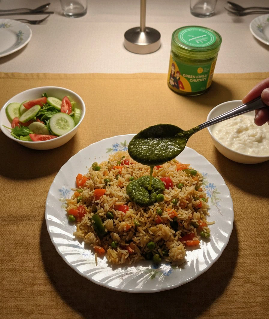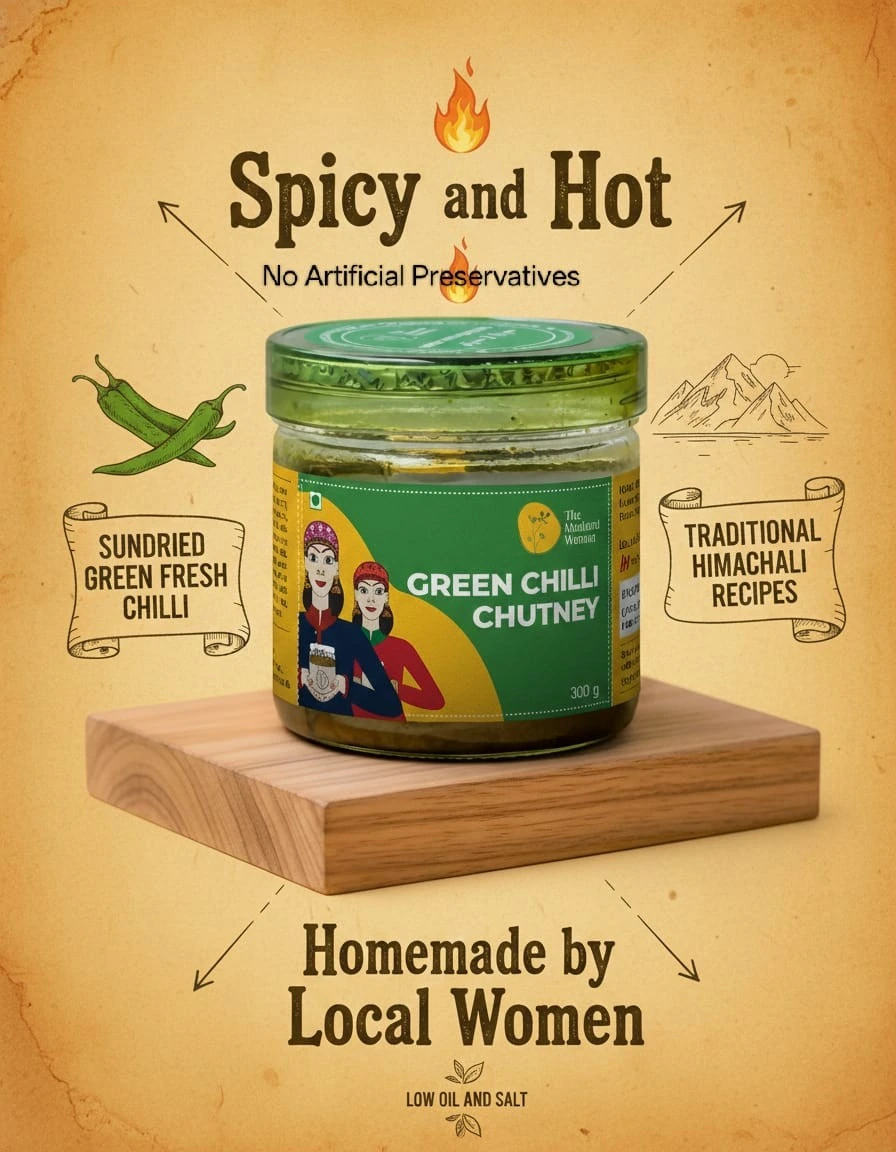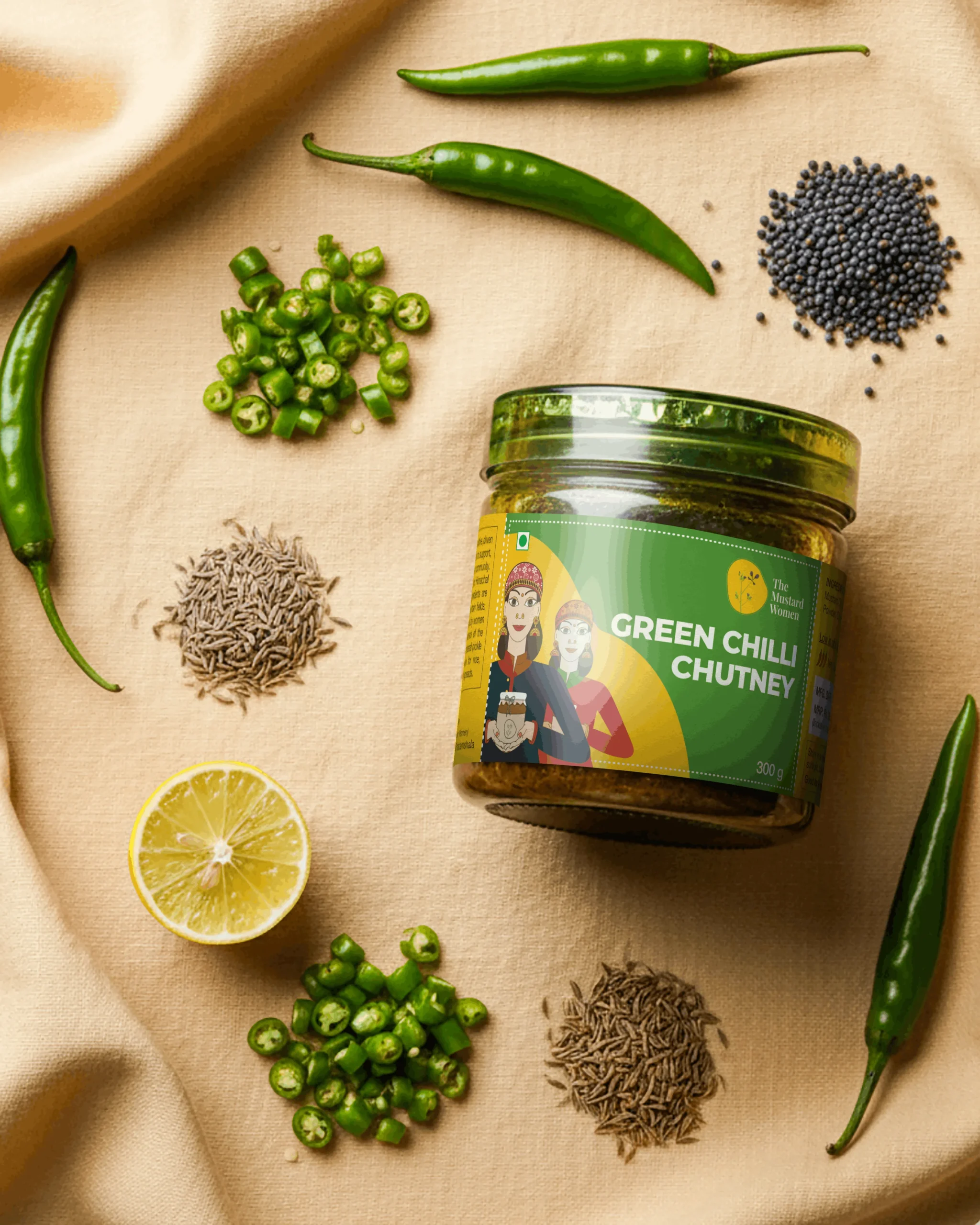 Introducing Chug, the iconic Green Chilly Chutney of Himachal Pradesh! Made with love, chillies, and mustard oil, this spicy delight adds flavor to every bite.